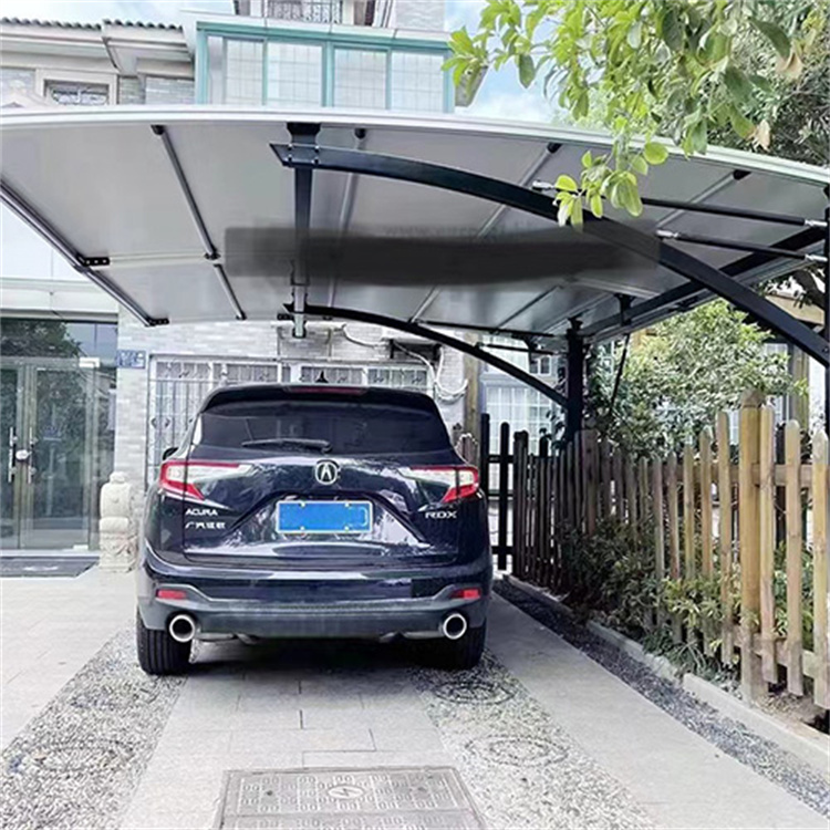 单体车篷 单体车篷尺寸:6MX3M(可定制) 顶蓬材料:铝边框+1050g PVDF膜 钢结构框架:热镀锌钢管喷涂 项目信息:国外私家车位安装,黑色支架搭配灰色顶篷